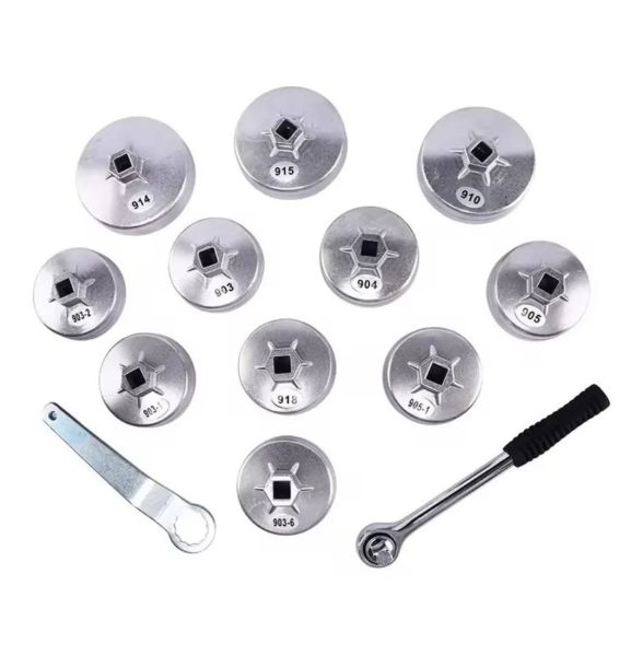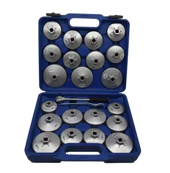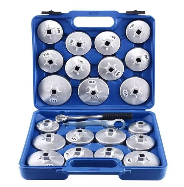 کیت فیلتر بازکن کاسهای ۲۳ پارچه ، مناسب تمام فیلترهای روغن خودروهای سواری ایرانی و وارداتی همراه با دسته جغ جغه ۱/۲و آچار