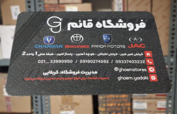 فروشگاه قائم کربلایی – مرکز تهیه و توزیع لوازم یدکی ماشینهای چینی ، فروش تخصصی قطعات اصلی و شرکتی چانگان و برلیانس و تعمیرات قطعات در بازار چراغ برق تهران ، خیابان اکباتان کوچه آهنین پاساژ امین طبقه منفی یک واحد ۲