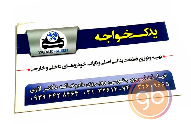 فروشگاه یدک خواجه ایرانیان – تهیه و توزیع لوازم یدکی انواع خودروهای داخلی و خارجی در استان اصفهان – فروش تخصصی انواع موتور خودرو با برگه راهنمایی رانندگی – تامین قطعات و متعلقات موتور و لوازم مصرفی – تهیه و توزیع قطعات اصلی و نایاب خودروهای داخلی و خارجی – آدرس فروشگاه : استان اصفهان خ نیروی جنوبی بعداز تقاطع رکن الدوله روبه روی داروخانه دکترلاوی شرکت یدک خواجه ایرانیان